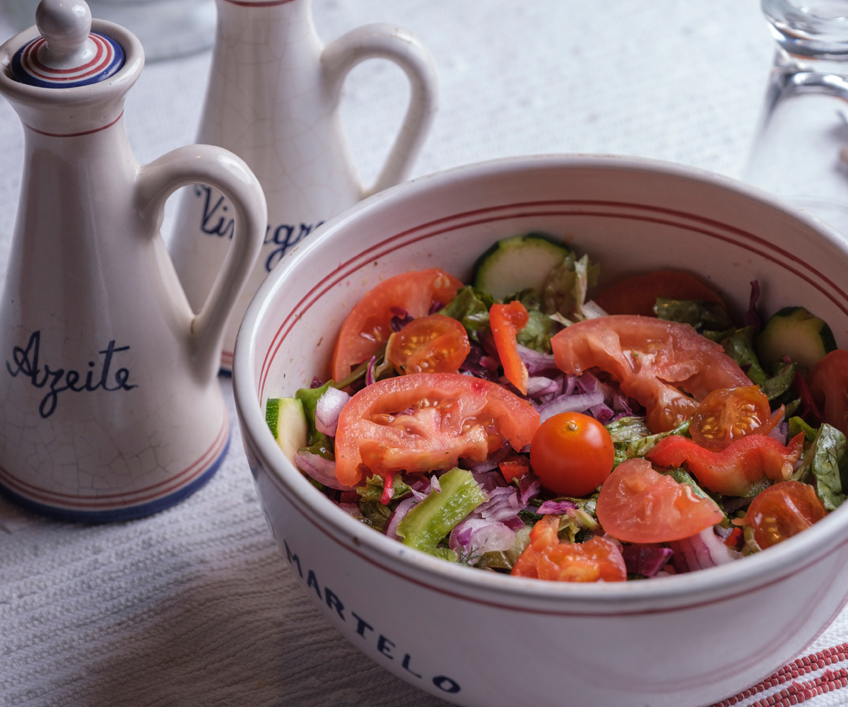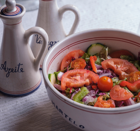Nesta cozinha, onde imperam saberes tradicionais, desde os vegetais fresquíssimos, colhidos na hora e produzidos sem recurso a químicos, passando pelo peixe fresco do nosso mar, até às melhores carnes trabalhadas a lenha, em receitas ancestrais, com todos os cuidados de higiene e segurança alimentar, reside a alma da Adega da Quinta do Martelo.